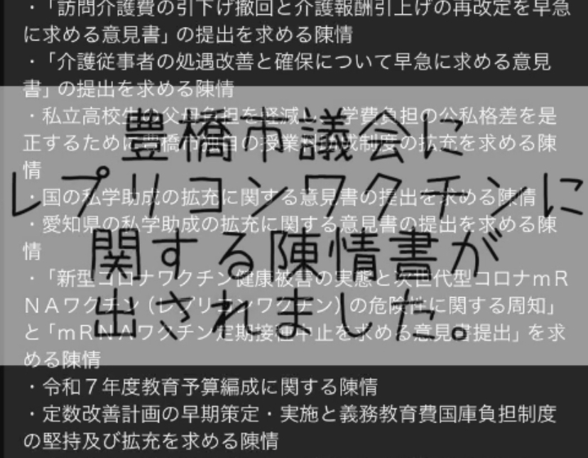 今回の内容は、2号に掲載した豊橋市内の救急車の出動台数の増加と、心筋炎による死亡が急増したことの因果関係の推測に加え、豊橋市内の新型コロナワクチンによる国の被害救済制度の認定者数を情報開示請求した結果を掲載しています。